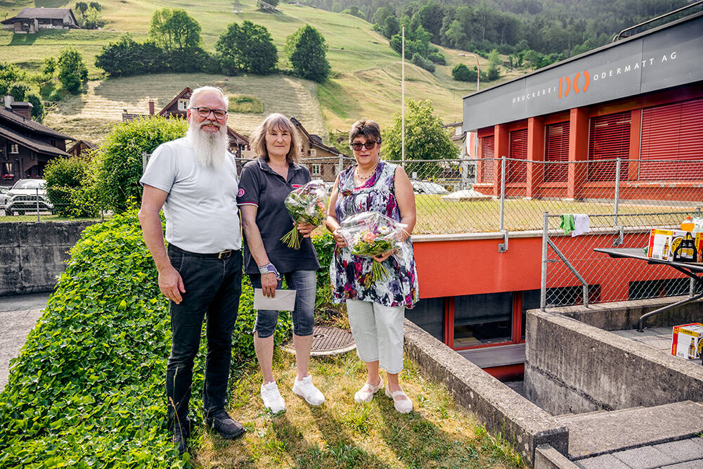 Mitte Juni durften wir zwei langjährige Mitarbeiterinnen in den wohlverdienten Ruhestand verabschieden. Regula Rölli und Alice Rada haben viele Jahre ihres Lebens der Druckerei Odermatt gewidmet.