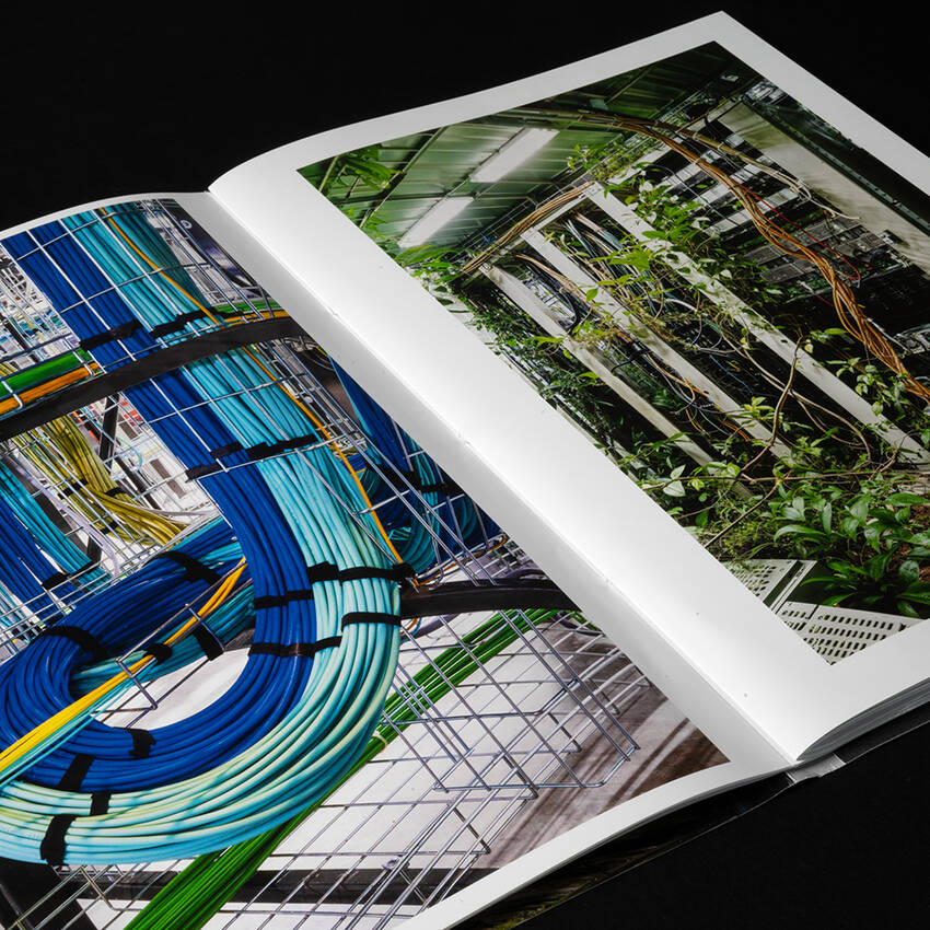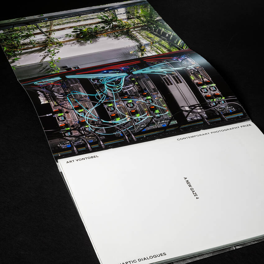 Broschur in Knotenfadenheftung mit grau-silbernem Faden und weisser Heissfolienprägung, Klappenumschlag dreiseitig überstehend