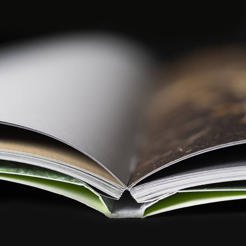 Freirückenbroschur in Fadenheftung mit am Rücken verleimten Schutzumschlag