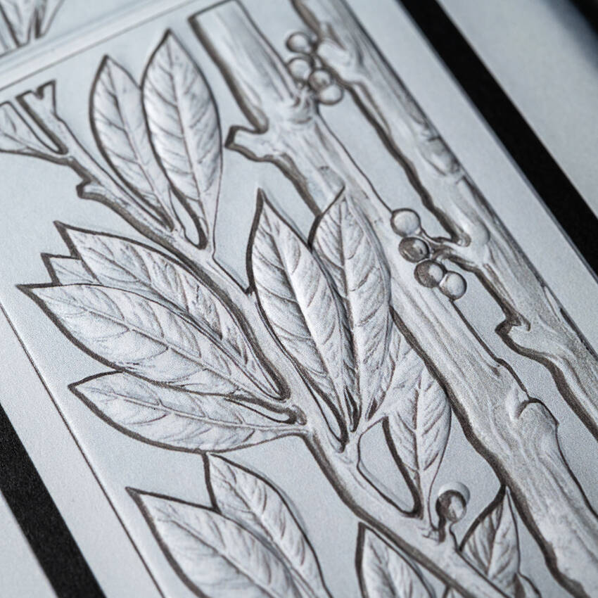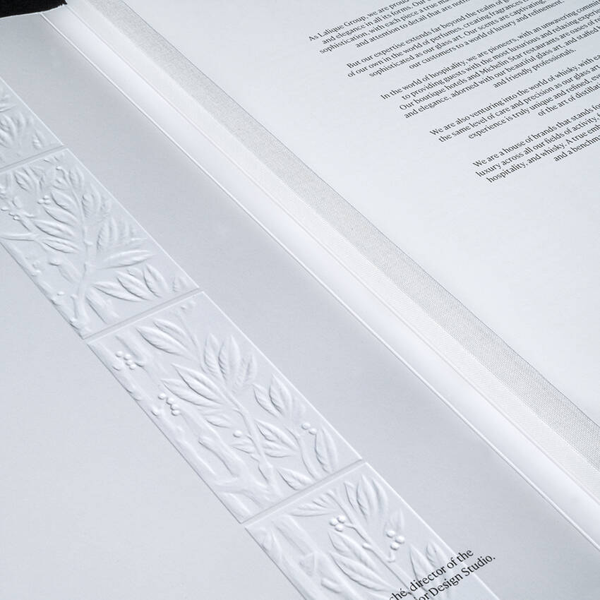 Schweizerbroschur mit weissem Fälzelband gefälzelt, Umschlag mit Reliefprägung ab von Hand hergestelltem Klischée